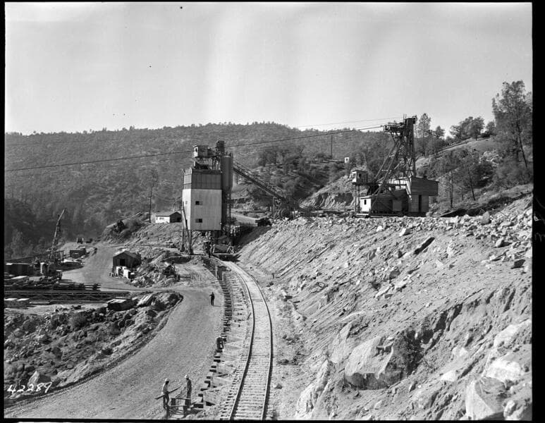 Big Creek Powerhouse #4 - Construction pictures taken by Dam & Tunnel Office. [railroad construction for Batch Plant cable delivery tower]