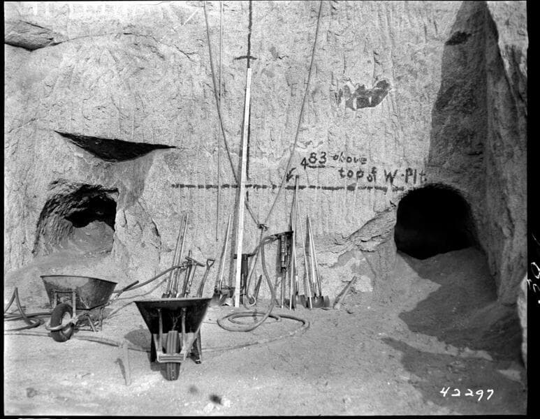 Big Creek Powerhouse #4 - Construction pictures taken by Dam & Tunnel Office. [excavation at Tunnel #1 outlet portal]
