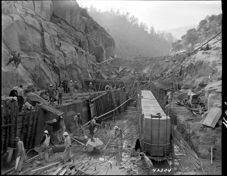 Big Creek Powerhouse #4 - Construction pictures taken by Dam & Tunnel office. [Dam 7 first pour on foundation block]