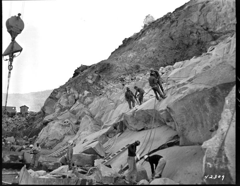 Big Creek Powerhouse #4 - Construction pictures taken by Dam & Tunnel Office. [Dam 7 construction - concrete placement from upstream]