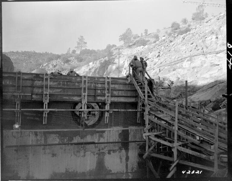 Big Creek Powerhouse #4 - Construction pictures taken by Dam & Tunnel office. [Dam 7 concrete placement in form blocks]