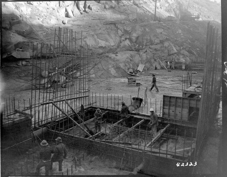 Big Creek Powerhouse #4 - Construction pictures taken by Dam & Tunnel office. [Dam 7 framed foundation blocks ready for concrete]