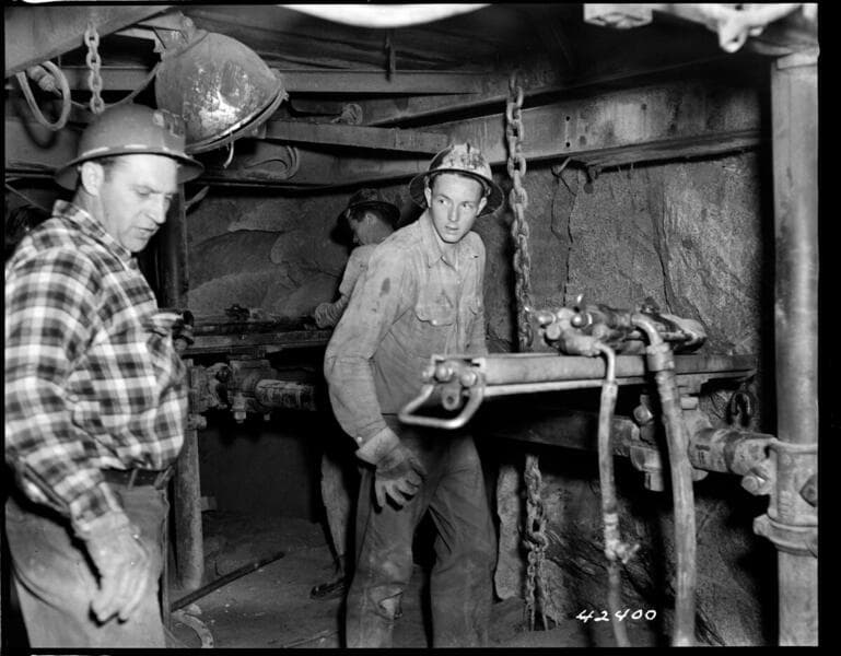 Big Creek Powerhouse #4 - Construction pictures taken by Dam & Tunnel office. [workers drilling in Tunnel #2]