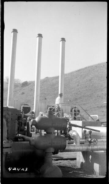 Etiwanda Steam Station - Euclid Fuel Oil Pumping Station - Etiwanda fuel oil line showing Cooper Bessmer pumps.