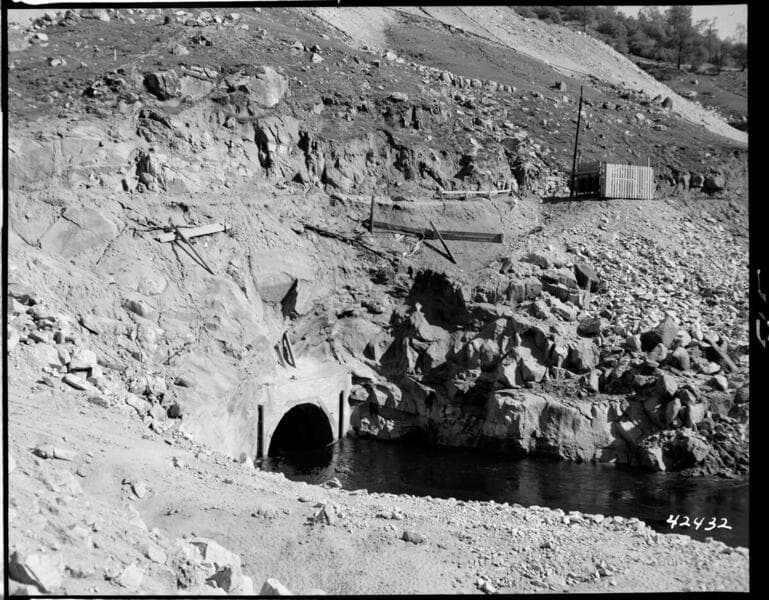 Big Creek Powerhouse #4 - Construction pictures taken by Dam & Tunnel Office. [Dam 7 construction - showing lower portal of bypass tunnel.