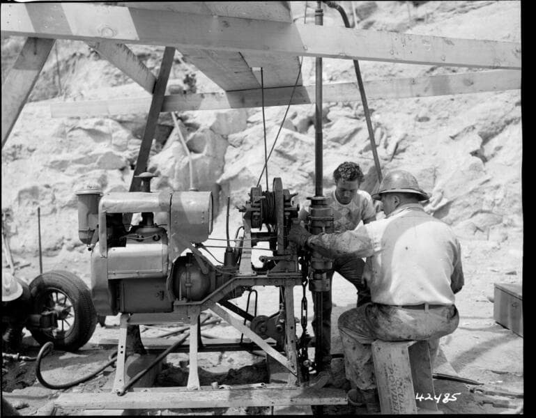 Big Creek Powerhouse #4 - Construction pictures taken by Dam & Tunnel Office. [drilling in rock]