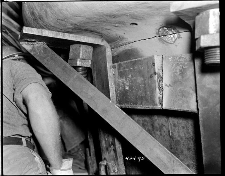 Big Creek Powerhouse #4 - Construction pictures taken by Dam & Tunnel Office. [construction - structural steel - Crack[?] visible]