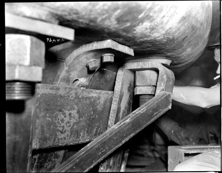 Big Creek Powerhouse #4 - Construction pictures taken by Dam & Tunnel Office. [construction - structural steel - Crack[?] visible]