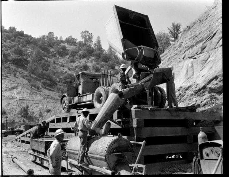 Big Creek Powerhouse #4 - Construction pictures taken by Dam & Tunnel Office. [constructing the concrete delivery system for Dam 7]