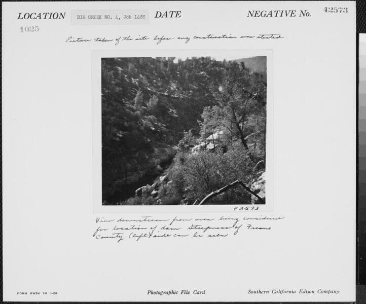 Big Creek Powerhouse #4 - Photo taken at site before any construction was started. Looking at left side of river channel near dam site.