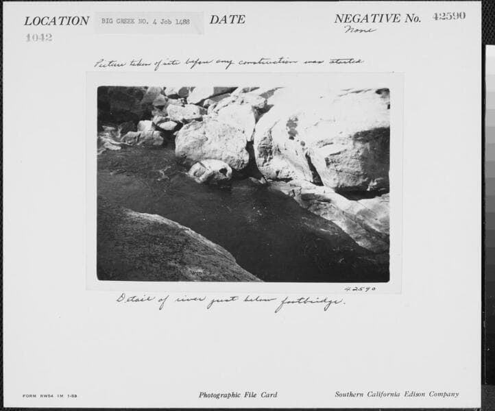 Big Creek Powerhouse #4 - Photo taken at site before any construction was started. Detail of Madera County side just above footbridge.