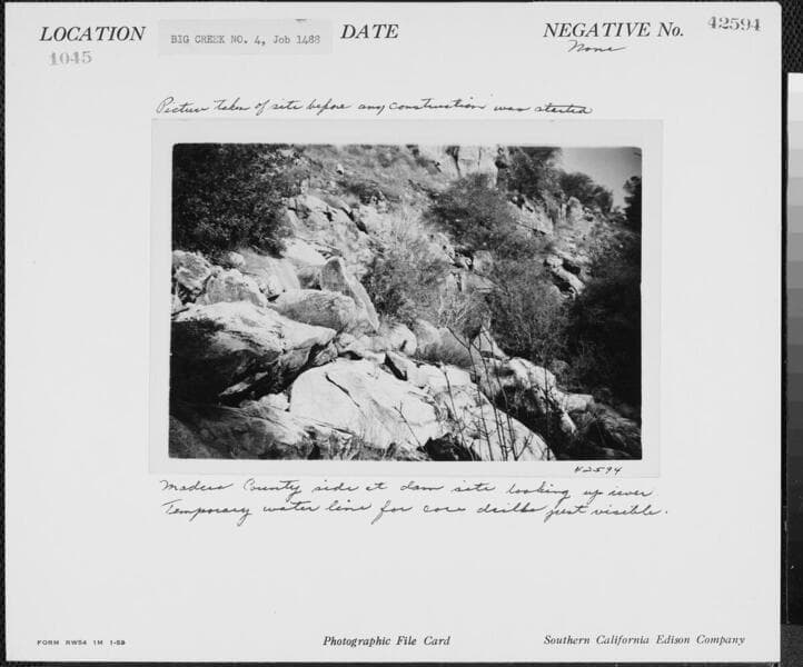 Big Creek Powerhouse #4 - Photo taken at site before any construction was started. Madera County side just below footbridge.