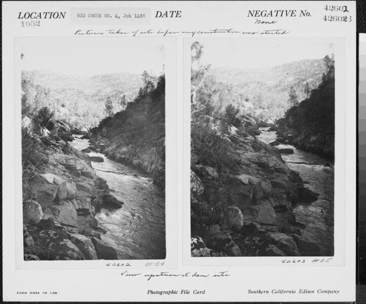 Big Creek Powerhouse #4 - Photo taken at site before any construction was started. View upstream at dam site
