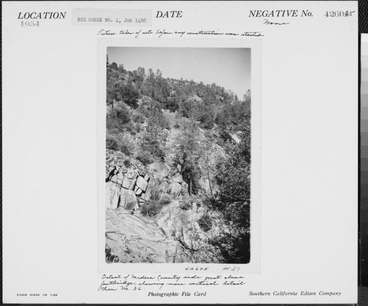 Big Creek Powerhouse #4 - Photo taken at site before any construction was started. Detail of Madera County side just above footbridge.