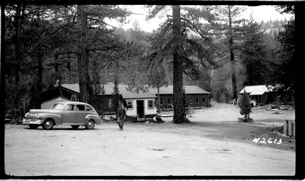 Big Creek, Vermilion Dam - Construction camp site for Vermilion Valley work, and material stored in fall of 1952 for use during spring of 1953.
