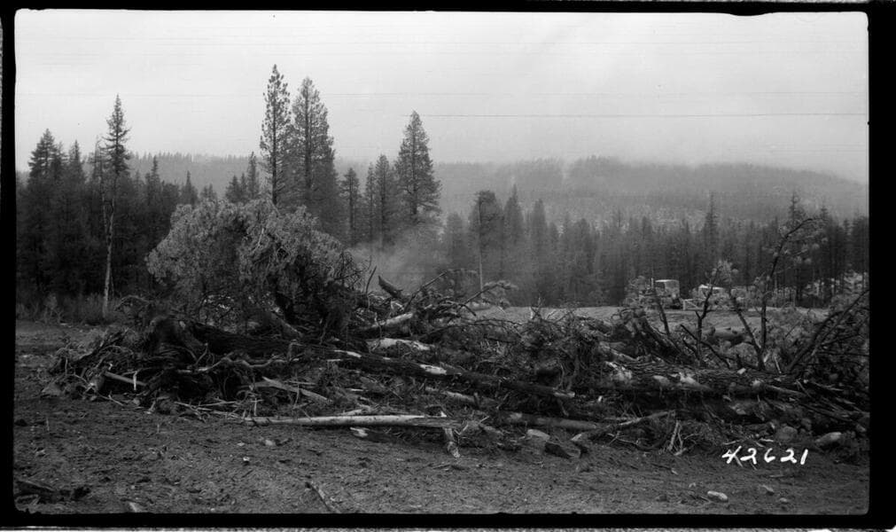 Big Creek, Vermilion Dam - Clearing debris from hill, west side of Borrow Pit #4.