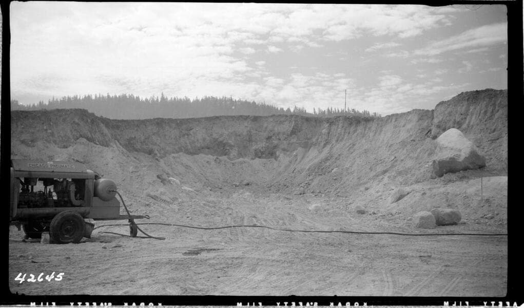 Big Creek, Vermilion Dam - East along damsite top cut for core trench in mid ground.