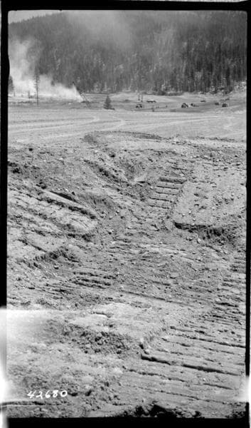 Big Creek, Vermilion Dam - Preparing to put water in test pit in impervious section.