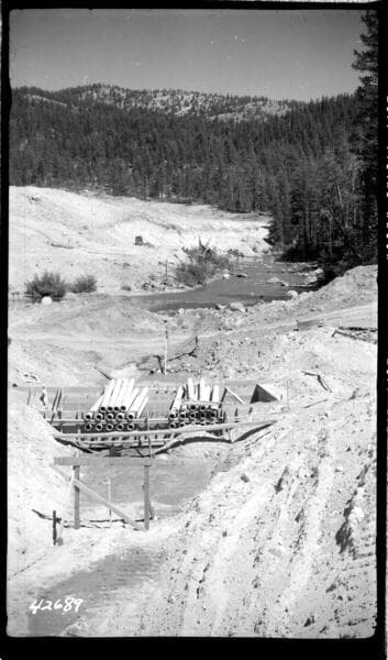 Big Creek, Vermilion Dam - Transit toe drain pipes under outlet conduit.
