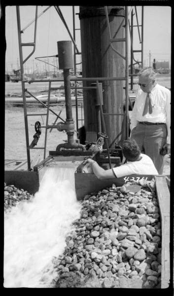 Big Creek, Vermilion Dam - Test set up for Howell-Bunger valve model. Test made at Long Beach Steam Station.