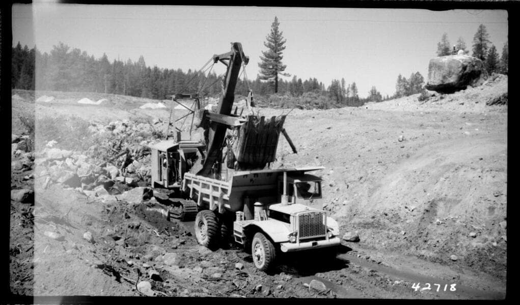 Big Creek, Vermilion Dam - D-8 [Cat] and rock rack clearing boulders from east abutment.