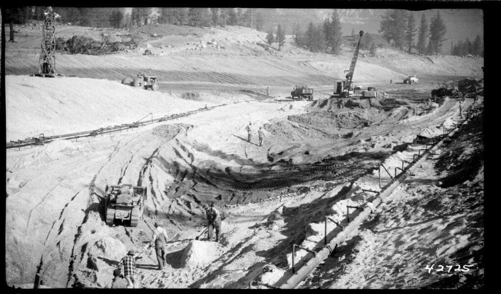 Big Creek, Vermilion Dam - Trimming foundation for impervious blanket at upstream end of outlet conduit.