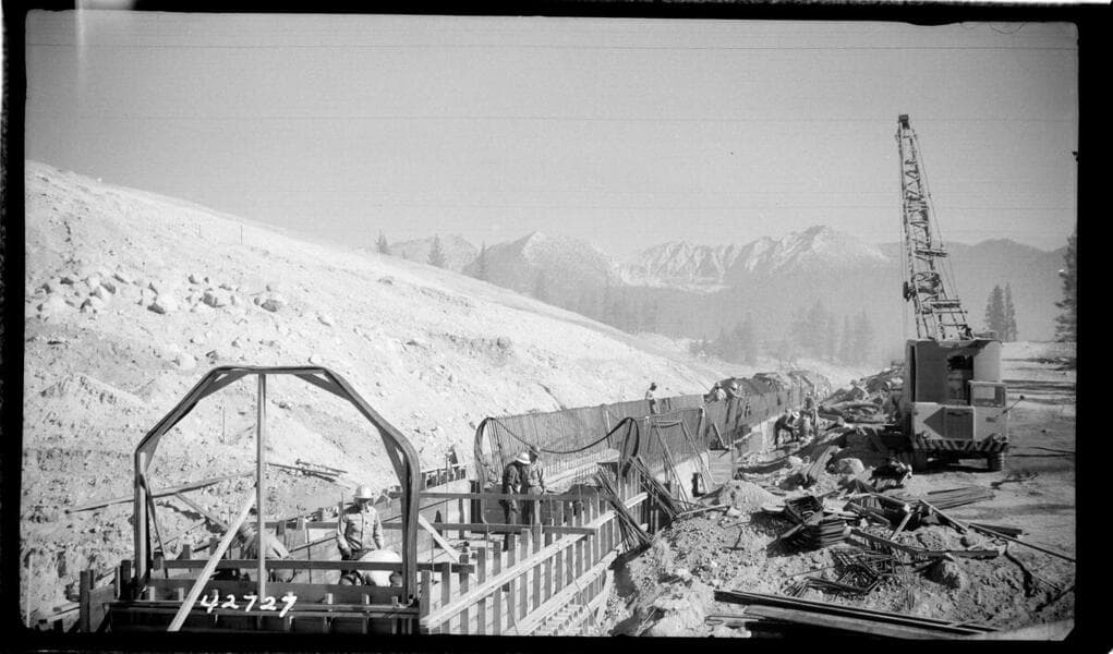 Big Creek, Vermilion Dam - Outlet Conduit, view north, showing excavation of outlet channel and outlet conduit; also fill at dam.