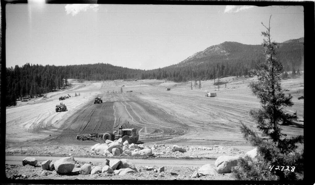 Big Creek, Vermilion Dam - Vermilion looking west. Dark material is core end blanket.