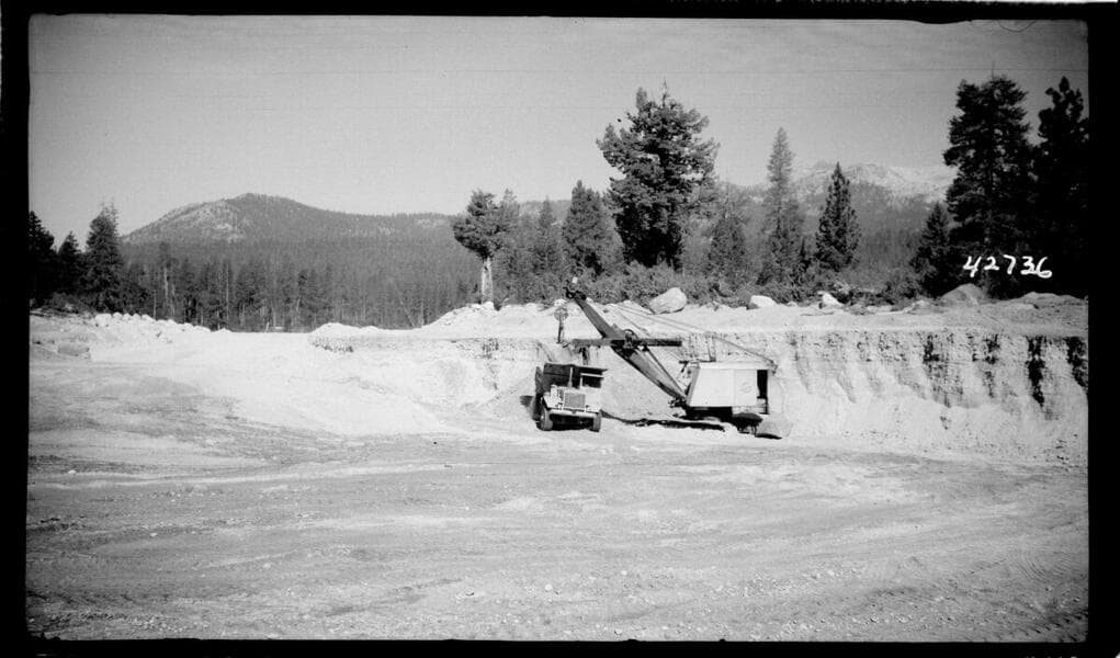 Big Creek, Vermilion Dam - spreading selected pervious material from borrow pit near Bear Road.