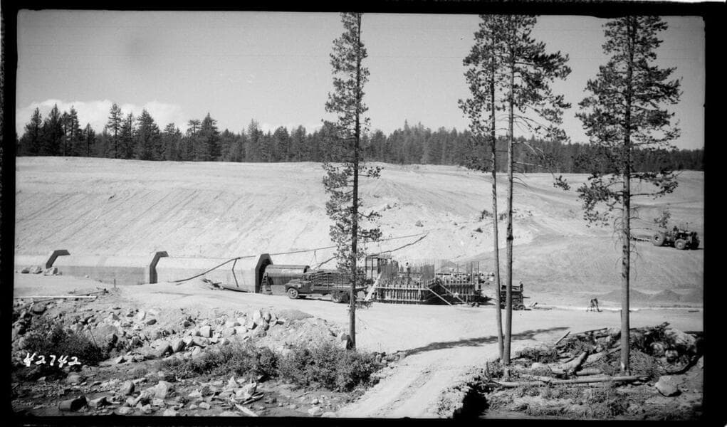Big Creek, Vermilion Dam - Closure section of conduit showing 3'-1" corrugated bypass from intake structure.