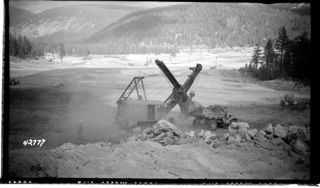 Big Creek, Vermilion Dam - excavating moraine ridge east of abutment blanket.