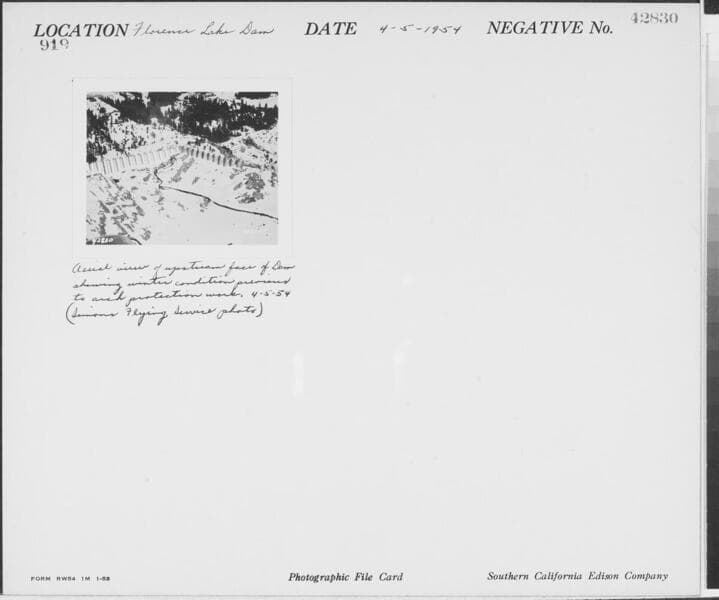 Big Creek, Florence Lake Dam - Aerial of upstream face of Florence Lake Dam