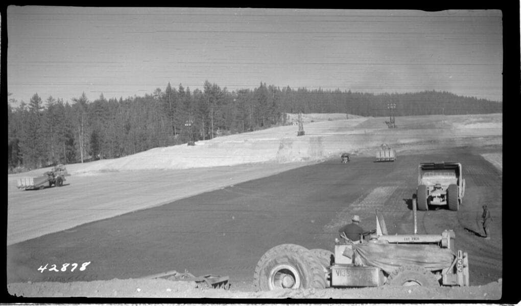 Big Creek, Vermilion Dam - Placing fill in creek section of dam.