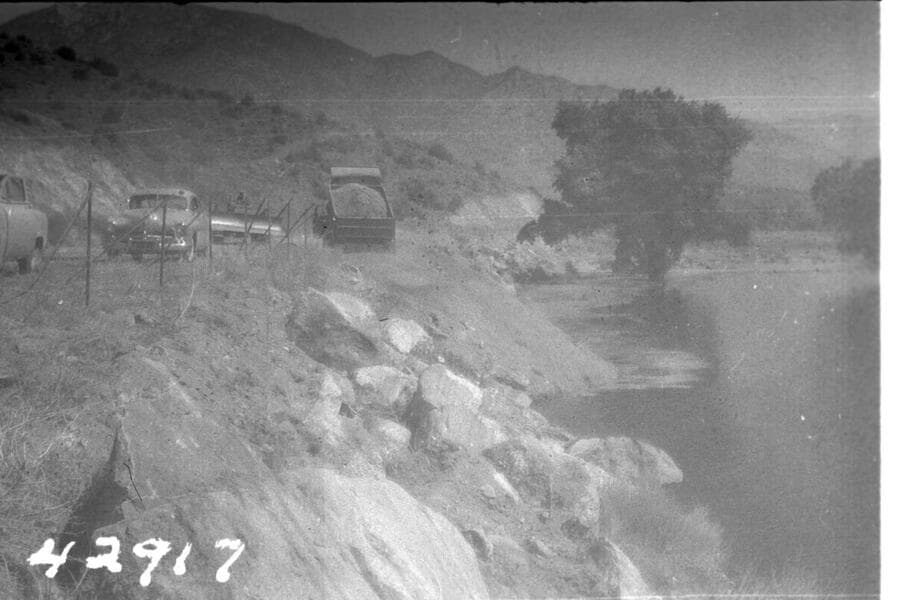 Borel Powerhouse - Borel Canal - Shows excavation of mountainside for berm fill.