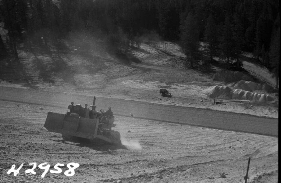 Big Creek, Vermilion Dam - Trimming downstream slope of East abutment.