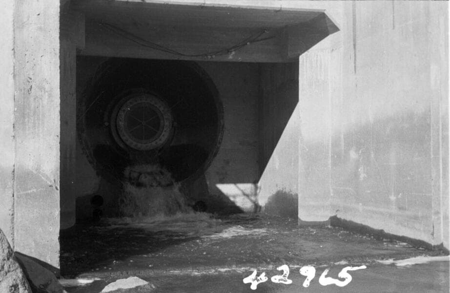 Big Creek, Vermilion Dam - Outlet showing Howell-Bunger valve.