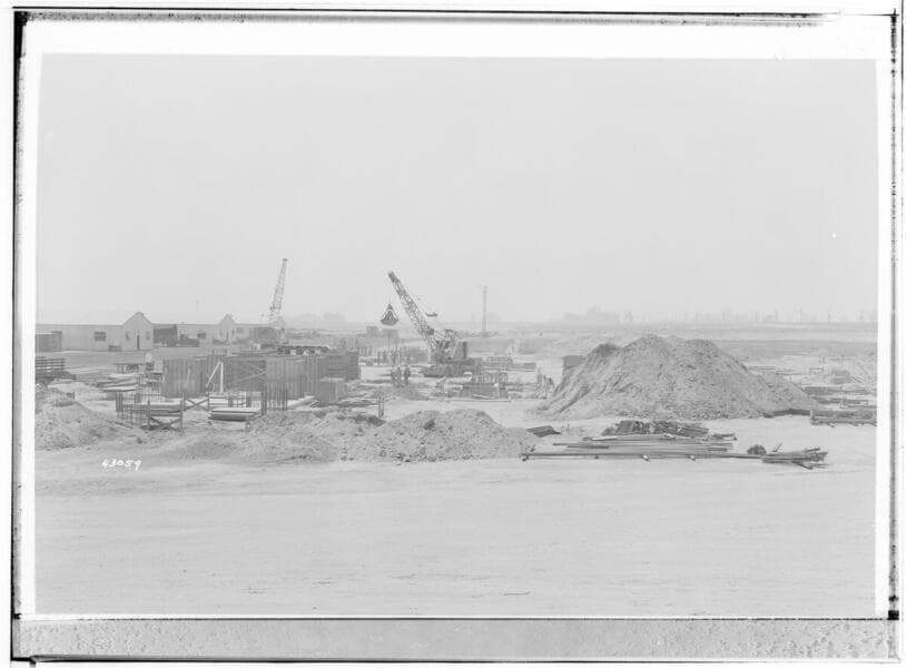 Etiwanda Steam Station - General view of turbine and boiler area looking west showing progress of excavation for Unit #1 & #2 Turbine foundation.