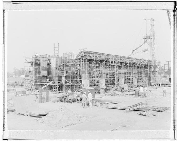 Etiwanda Steam Station - General view of turbine and boiler area looking west. Unit #1 Turbine support forms in left center.
