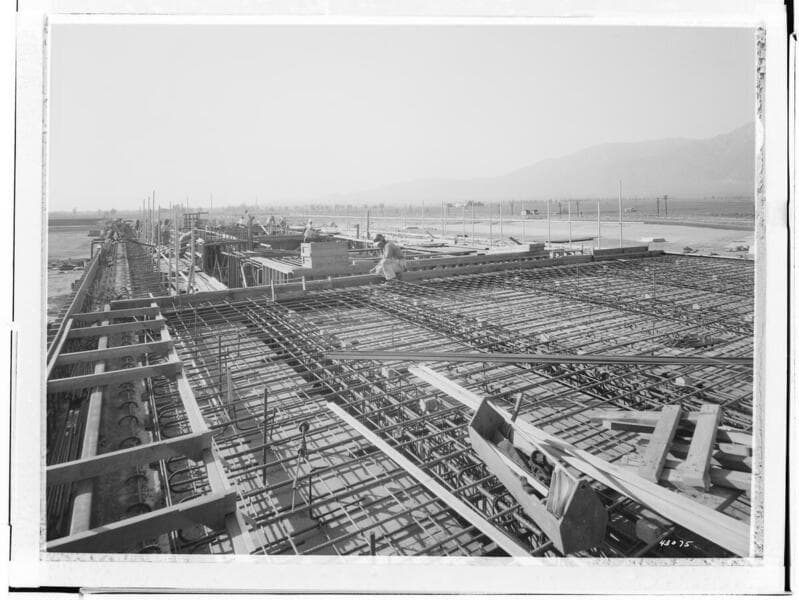 Etiwanda Steam Station - View of Turbine Bay column formwork and reinforcing steel looking north with forms for #1 turbine support on left.