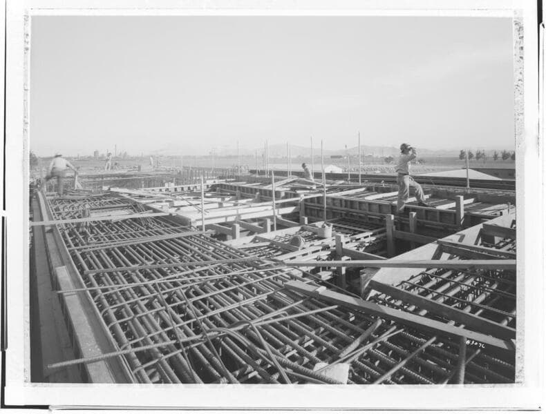 Etiwanda Steam Station - View of Turbine Bay column formwork and reinforcing steel looking north with forms for #1 turbine support on left.