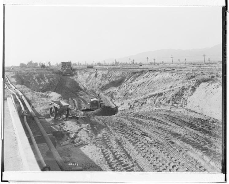 Etiwanda Steam Station - General view of turbine and boiler area looking west showing progress of excavation for Unit #1 & #2 Turbine foundation.