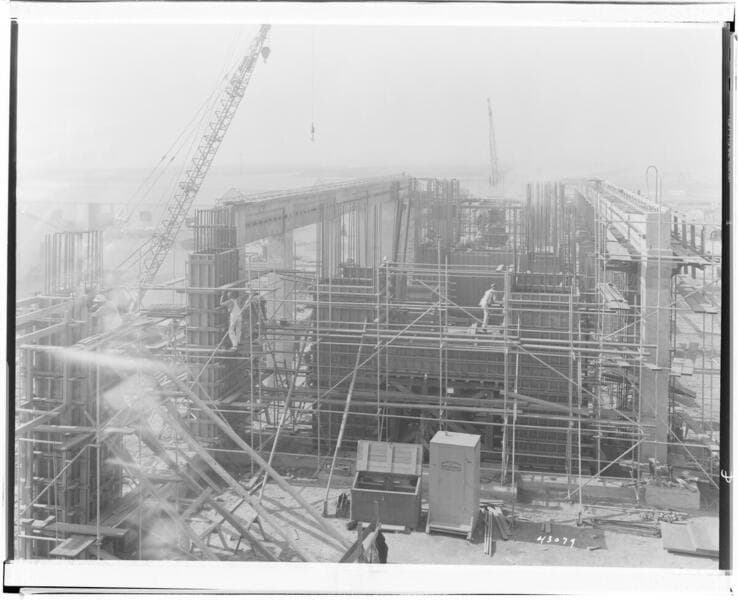 Etiwanda Steam Station - View looking west from Unit #1 support showing progress of form work for Unit #2 turbine support.
