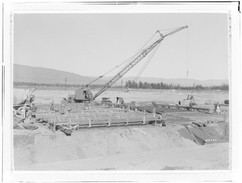Etiwanda Steam Station - View looking southeast showing construction of cooling tower foundation.