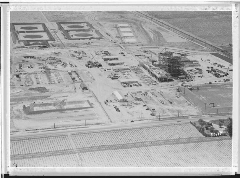 Etiwanda Steam Station - Aerial view of construction site looking in westerly direction across [site].
