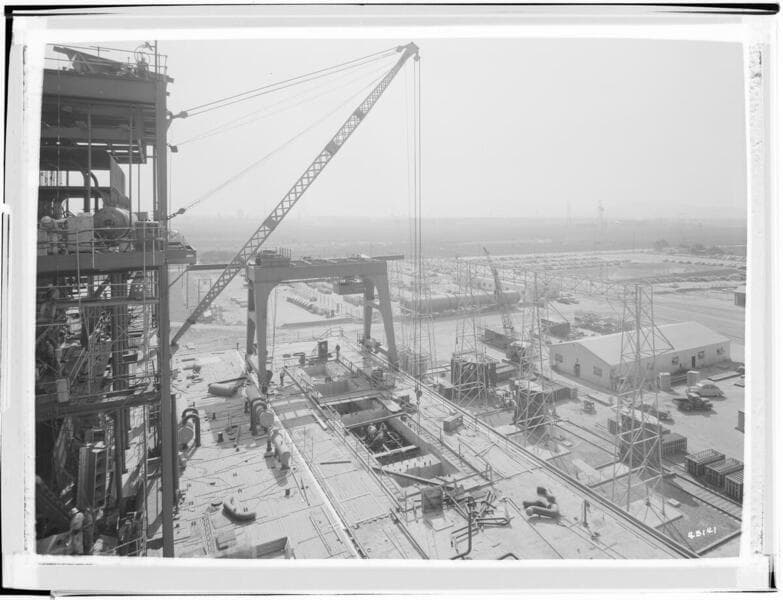 Etiwanda Steam Station - View of erection of Boiler #1. Taken from turbine bay operating deck.