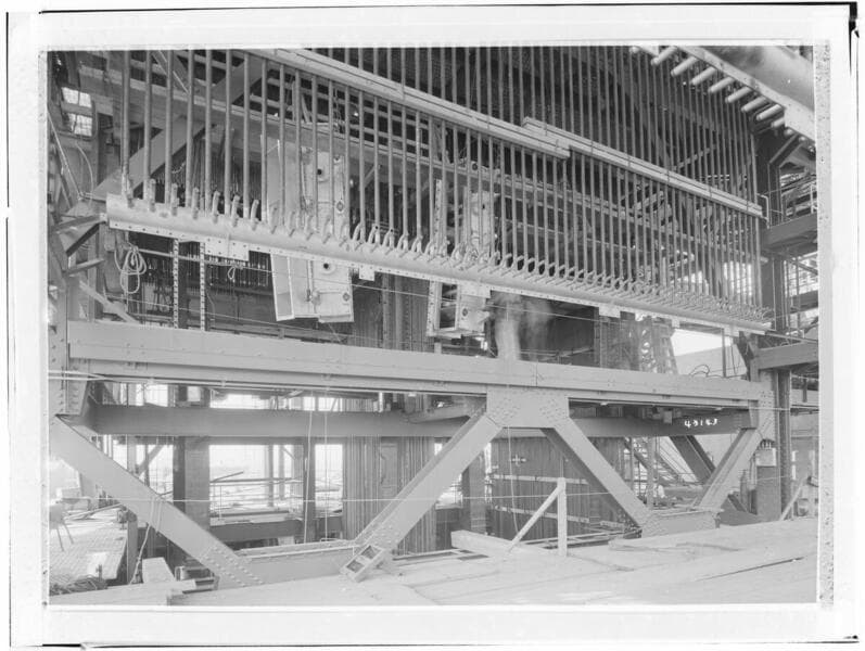 Etiwanda Steam Station - Progress of erection - Boiler #1 showing interior of reheat section on left and furnace area on right.