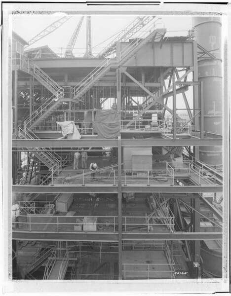 Etiwanda Steam Station - General view of turbine and boiler area looking west. Unit #1 Turbine support forms in left center.