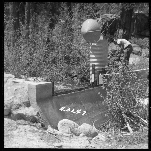 Big Creek Hydrographics - Dam & Parshall Flume at So. 7R San Joaquin River near Florence Lake looking upstream.