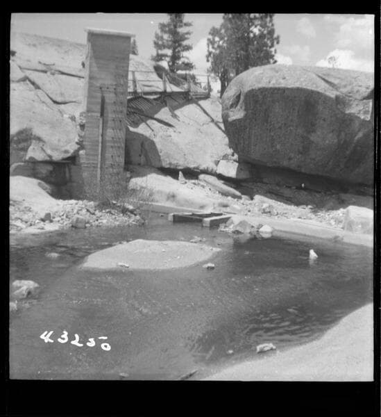 Big Creek Hydrographics - Dam & Parshall Flume at So. 7R San Joaquin River near Florence Lake looking upstream.