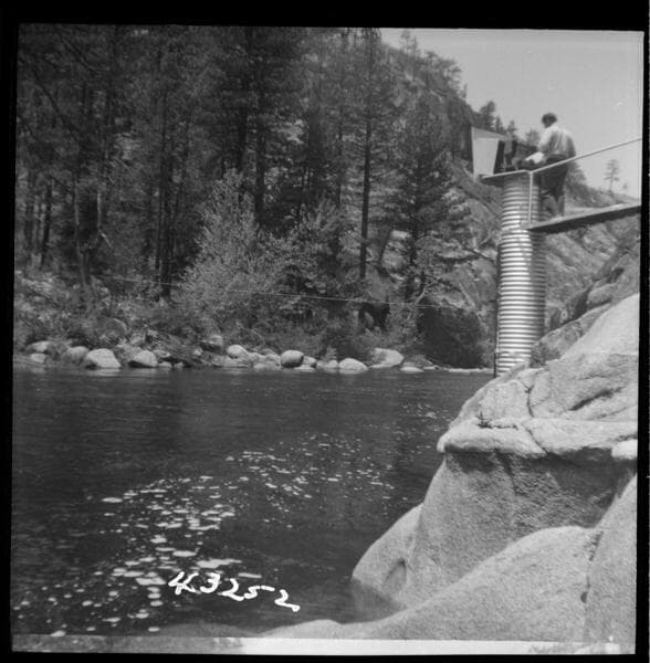Big Creek Hydrographics - So. 7R San Joaquin River below Mono Creek looking downstream from cable car.